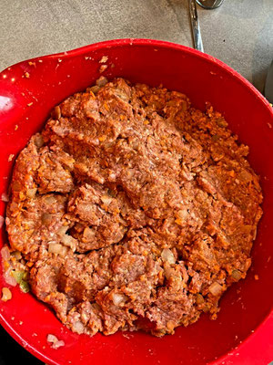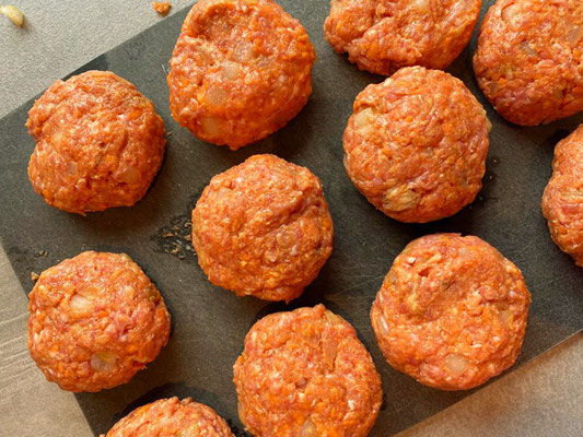 Wer unsere Rezepte kennt wird die Zutaten für die Friko´s wieder erkennen. Natürlich sind sie im Prinzip mit denen der Burger Patties identisch. Die GE typische Zutat unserer Frikadellen oder