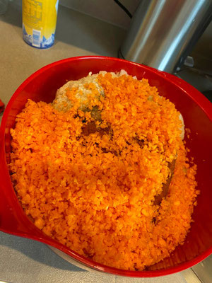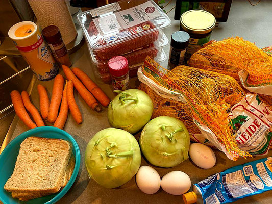 aus meiner Jugend noch keine Möhren. Heute können wir uns geraspelte Möhren aus der Fleischmasse nicht mehr wegdenken. Vermutlich war es vor 20 Jahren oder so, als wir uns vor Sorge, dass die