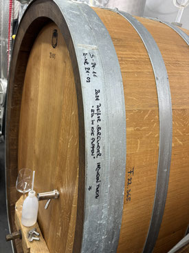 Anschließend geht es in den „Keller“ – einem Teil einer ehemaligen Fruchtsaftanlage. Die Trauben stammen von ausgewählten Winzern – einer davon ist auch Joachim selbst. Hier erhalten wir eine exklusive Fassprobe des 2024er Weißburgunders „Bis in die Puppen“. Ein spannender Einblick, der Lust auf den fertigen Wein in den kommenden Jahren macht.