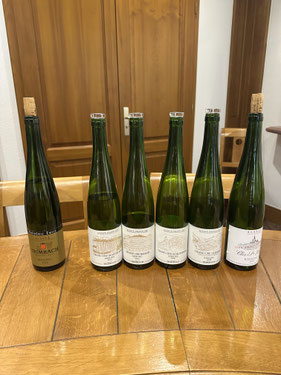 Die Trimbach-Rieslinge stammen aus Lagen mit unterschiedlichen Bodentypen – entweder Kalk- oder Granitböden. Und das schmeckt man deutlich: Die Rieslinge vom Kalkboden wirkten voller, runder, cremiger und eleganter, mit einem feinen Hauch von Champagner. Die Rieslinge vom Granitboden zeigten sich dagegen knackiger, frischer, mineralischer - insgesamt etwas geradliniger und präziser.