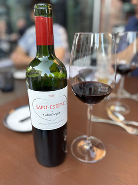 Zum Abendessen wurde – neben Wasser – ein 2015er Le Saint-Estèphe de Calon-Ségur serviert, der Drittwein des Château Calon-Ségur. Ein solider Bordeaux, der jedoch in Tiefe und Komplexität nicht an den 1996er “Lafon Rochet” (Saint-Estephe) vom ersten Abend heranreichte.