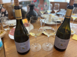 Ein besonderes Highlight ist gleich zu Beginn der „Willkommens-Sekt“: ein ungeschwefelter Chardonnay 2022, frisch etikettiert und nur in limitierter Auflage