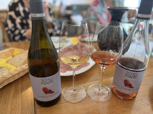 Besonders gut gefällt uns der Bagalut – ein Weißburgunder aus der Goldschuhlinie. Ein komplexer Wein mit langem Abgang, aktuell (Jahrgang 2021) noch etwas ungeschliffen, aber mit viel Reifepotenzial. Etwas zugänglicher, dafür weniger tiefgründig zeigen sich der Weißburgunder „Bis in die Puppen“ (2023) und der Grauburgunder „Famose Chose“ (2021) – beide aus der Rotschuhlinie und ideal für den sofortigen Genuss.