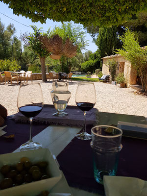 Und dann waren da noch die Weine von Oliver Moragues. Natürlich stand - wie jedes Jahr - ein Ausflug auf unser mallorquinisches Lieblingsweingut an. Oliver Moragues konnte uns dieses Mal zwar nicht persönlich begrüßen, was uns aber nicht daran hinderte, wie üblich hinter dem Haupthaus in seinem Garten(Eden) ein schattiges Plätzchen für den diesjährigen Weingenuss aufzusuchen. 3h die Seele baumeln lassen und in aller Ruhe die OM Kollektion genießen. Für uns gibt's kaum schönere Urlaubstage. Seleccio Especial und OM 500 sind schon seit Jahren eine Bank und konnten auch in diesem Jahr ihre Konstanz bestätigen.